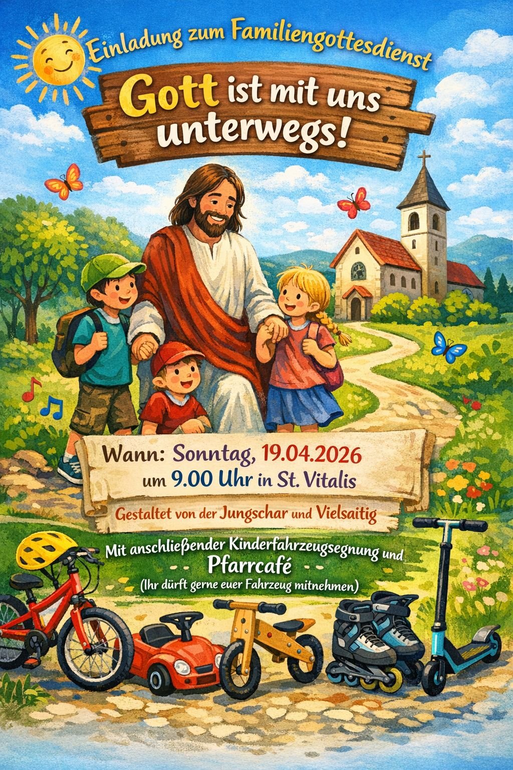 9 Uhr Familienmesse; anschließend Pfarrcaffee und Kinderfahrzeugsegnung